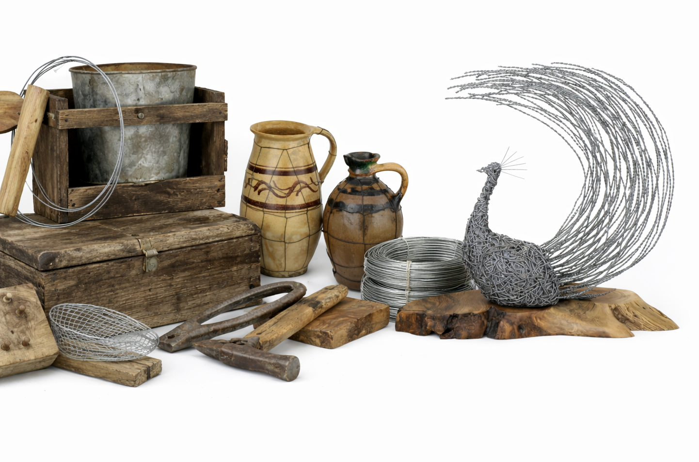 Diela sú vytvorené prevažne z pozinkovaného oceľového drôtu alebo nerezového drôtu, v kombinácii s prírodným orechovým drevom. Drôt je ručne ohýbaný a tvarovaný, pri tvorbe nie sú použité žiadne zvary ani lepenie. Pozinkovaný oceľový drôt nie je po finalizácii diela nijako povrchovo ošetrený, prirodzená reakcia materiálu a zmena farebnosti nie je vadou, naopak, je žiaduca. Drevo je sušené na cca 8 – 10 % a povrchovo upravené tvrdým voskovým olejom, menšie praskliny sú vytmelené živicou.